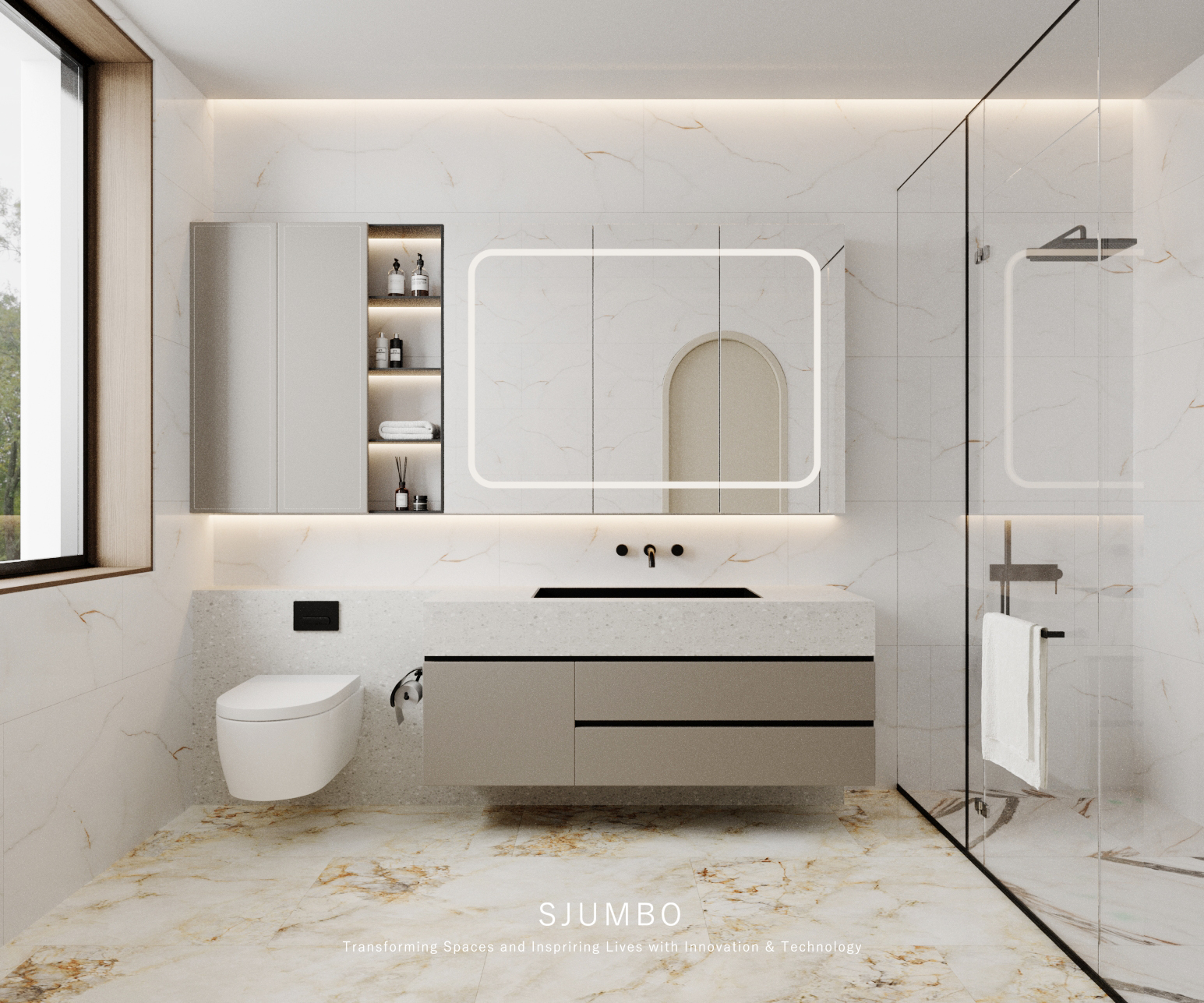 Hardware such as thermostatic showers and faucets in bathroom spaces tend to damage the minimalist sense due to functional structures, and need to form a whole with custom bathroom vanities. We choose integrated valve cores with knob-free and touch-controlled temperature regulation, hiding the water flow control structure inside the hardware, so that the modeling lines of faucets and shower heads maintain the same radian and texture as door lock handles; at the same time, according to the size and countertop height of SJUMBO’s custom bathroom vanities, we customize the installation position of hardware to ensure user convenience, so that functional adaptation does not interfere with style unity, and also allows hardware to form a seamless connection with bathroom vanities. The Concealed Parts of bathroom hardware need to be 3D coordinate aligned with the opening position of the back panel of the custom bathroom vanity during the water and electricity entry stage.